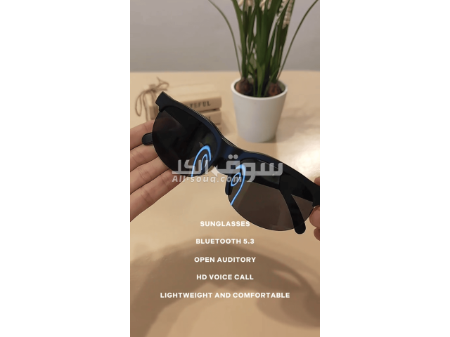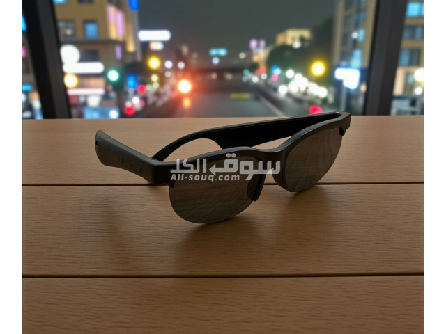 تصميم عصري يجمع بين النظارة الشمسية والسماعة اللاسلكية.